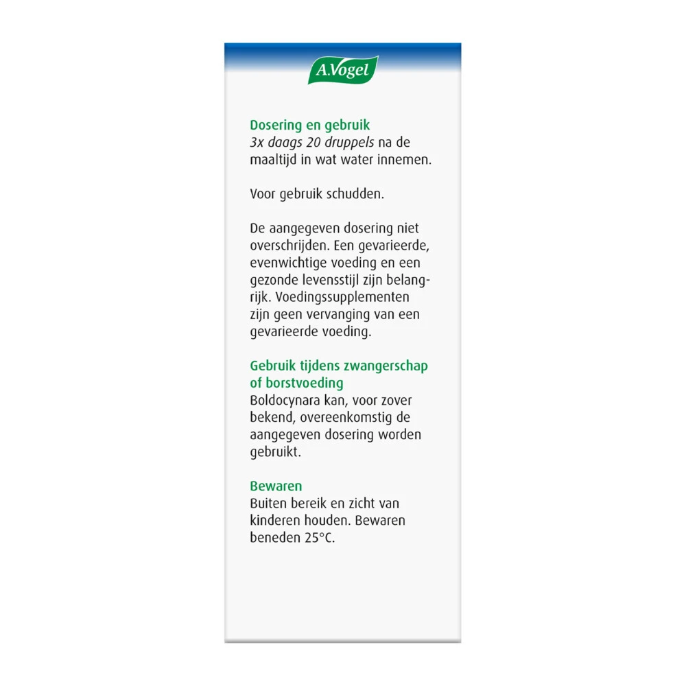 A.Vogel Boldocynara Druppels De Boldocynara Druppels van A.Vogel is een voedingssupplement en kruidenpreparaat dat goed is voor de lever* en de spijsvertering. Boldocynara druppels bevat de extracten van Artisjok, Mariadistel, Paardenbloem, Zuurbes en Varkensgras. Artisjok, Mariadistel en Paardenbloem ondersteunen de reinigende werking van de lever. Tevens ondersteunt Paardenbloem het functioneren van de maag en tenslotte zijn Zuurbes en Varkensgras goed voor de spijsvertering in de maag en