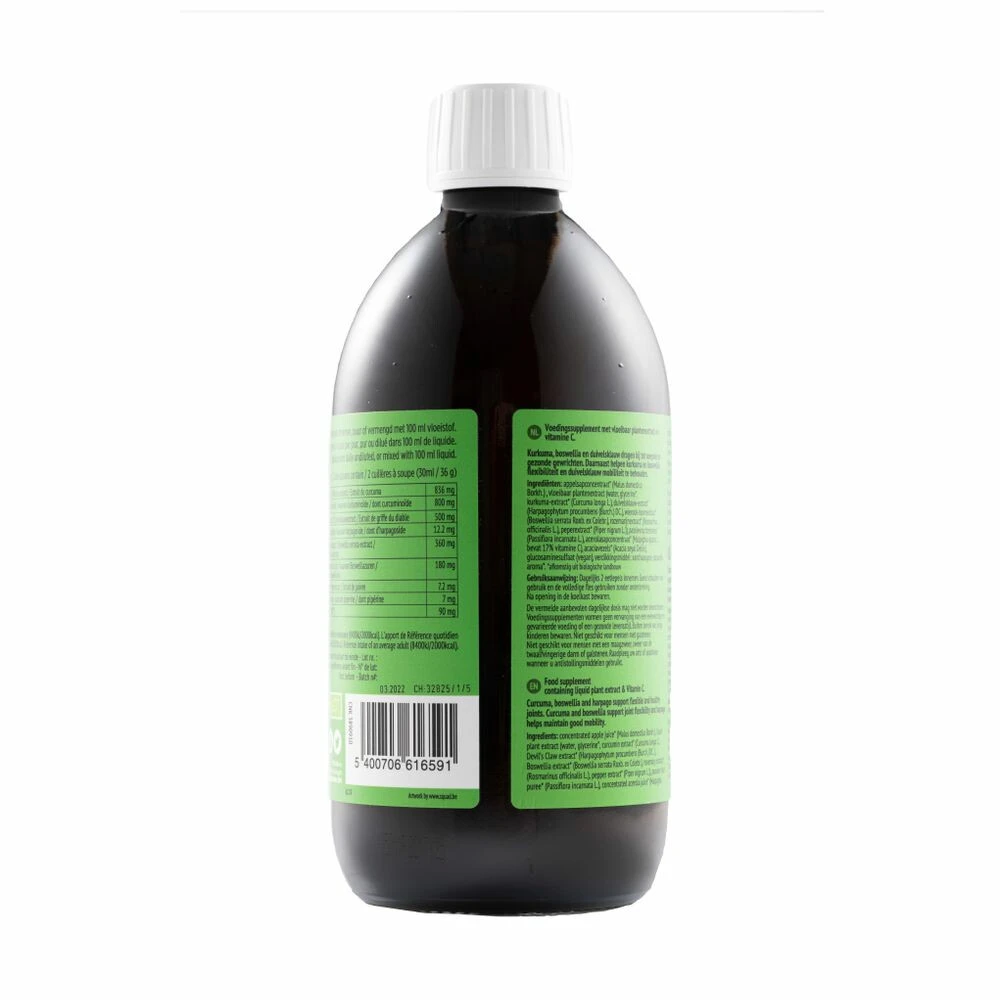 Purasana Curuma Joint FlexibilityPurasana Curcuma Joint Flexibility is curcumine in vloeibare vorm van Kurkuma, Duivelsklauw, Boswellia en Peper en vitamine C. Kurkuma, Boswellia en Duivelsklauw ondersteunen het behoud van gezonde en soepele gewrichten*. Daarnaast zorgt Duivelsklauw ervoor dat u soepel kunt blijven bewegen.Purasana Curcuma Joint flexibility smaakt licht naar curcuma en peper. Vitamine C draagt bij tot de normale collageenvorming voor de normale werking van de bottenVitamine