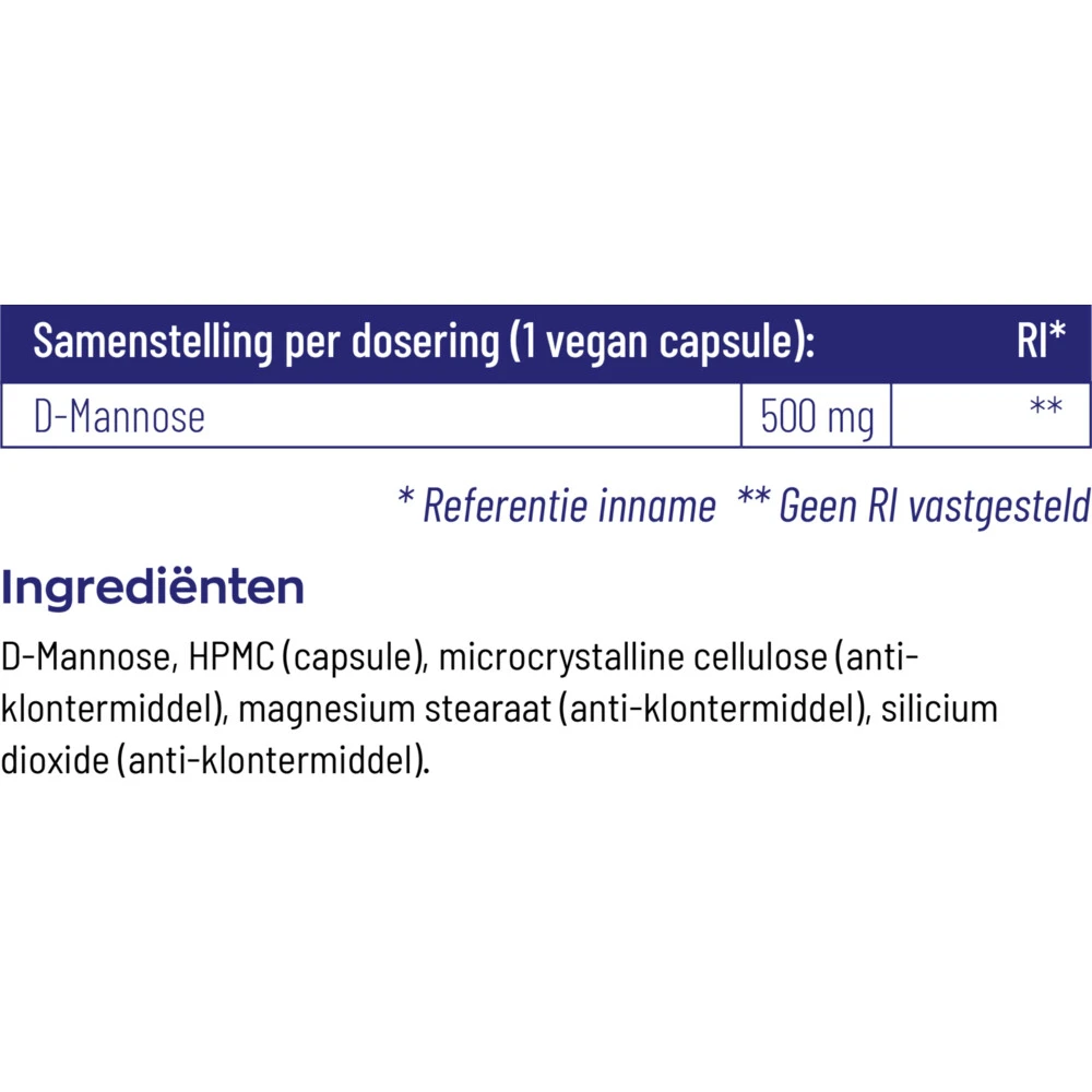 Vitakruid D-Mannose 500Vitakruid D-mannose 500 bevat een hoge dosering van de zuiverste d-mannose. Vitakruid D-Mannose 500 zit in een capsule, dit heeft zowel voordelen op het gebied van opname als smaak. Hoge dosering d-mannose per capsuleHoogwaardig extractieproces staat aan de basisEfficiënte opname door capsuleDoodt geen goede bacteriënGlutenvrij en lactosevrijVegan